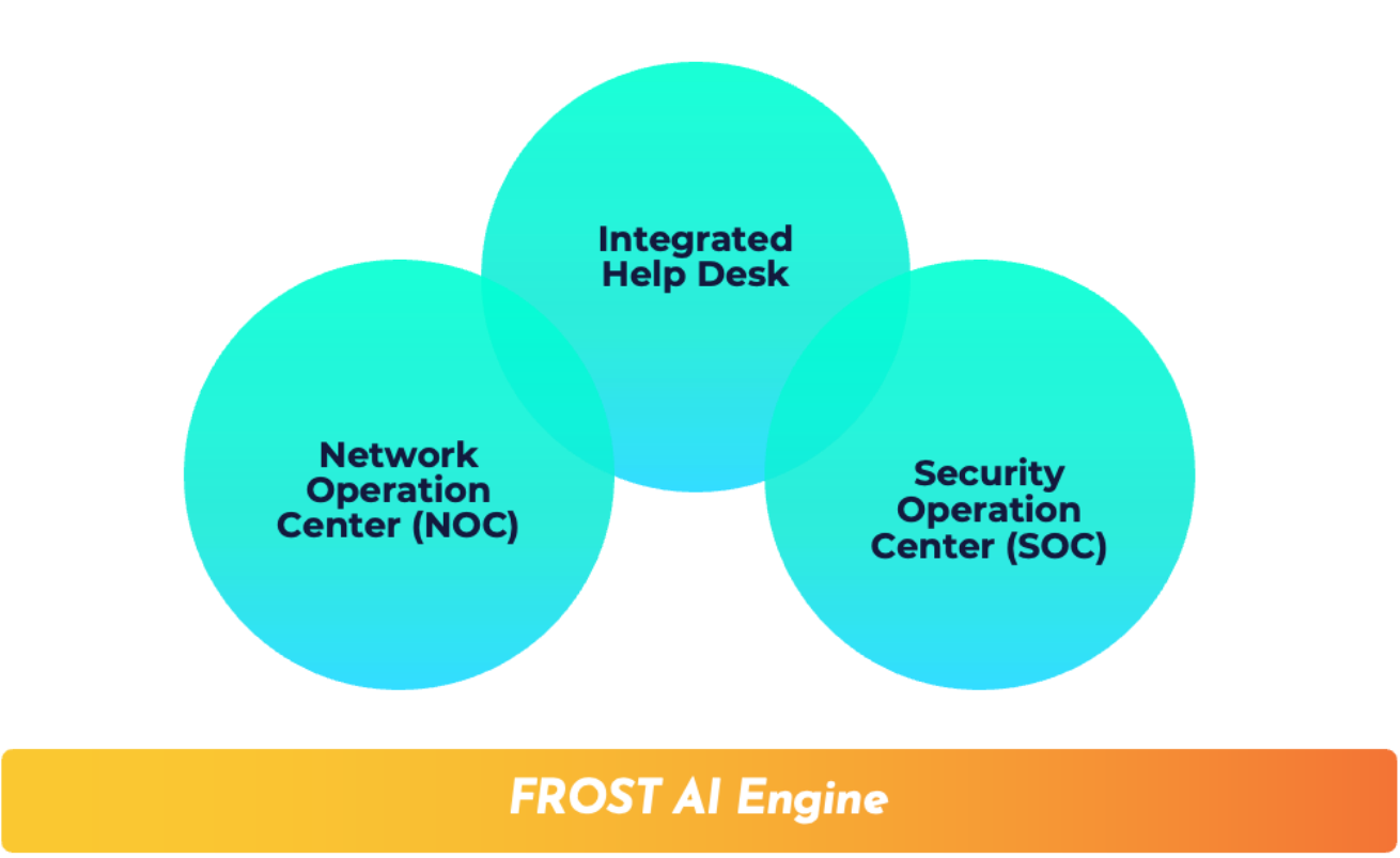 We deliver comprehensive service by integrating the Network Operation Center (NOC), Security Operation Center (SOC), and a centralized Help Desk on one intelligent platform.
